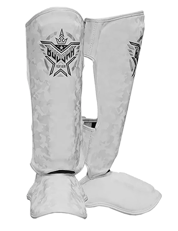 Las Espinilleras Buddha Army Blancas combinan una estética limpia y poderosa con un rendimiento técnico excepcional. Diseñadas para la práctica de Muay Thai, Kick Boxing y deportes de contacto, son la elección ideal para atletas que valoran tanto la protección como el estilo.