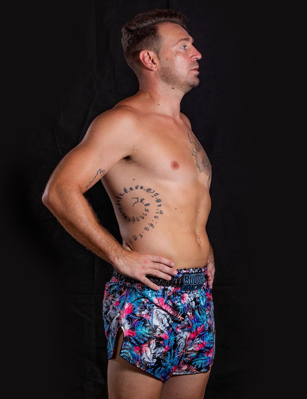 Voici la nouvelle série de pantalons Buddha Muay Thai Kick Boxing. EUROPÉENNEConçue avec un motif européen standardisé, cette série garantit une nouvelle coupe du short qui s'adapte parfaitement à la morphologie de chaque combattant et offre également une taille adaptée aux nouvelles tendances.